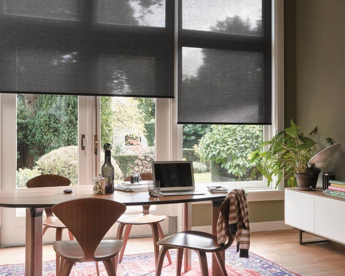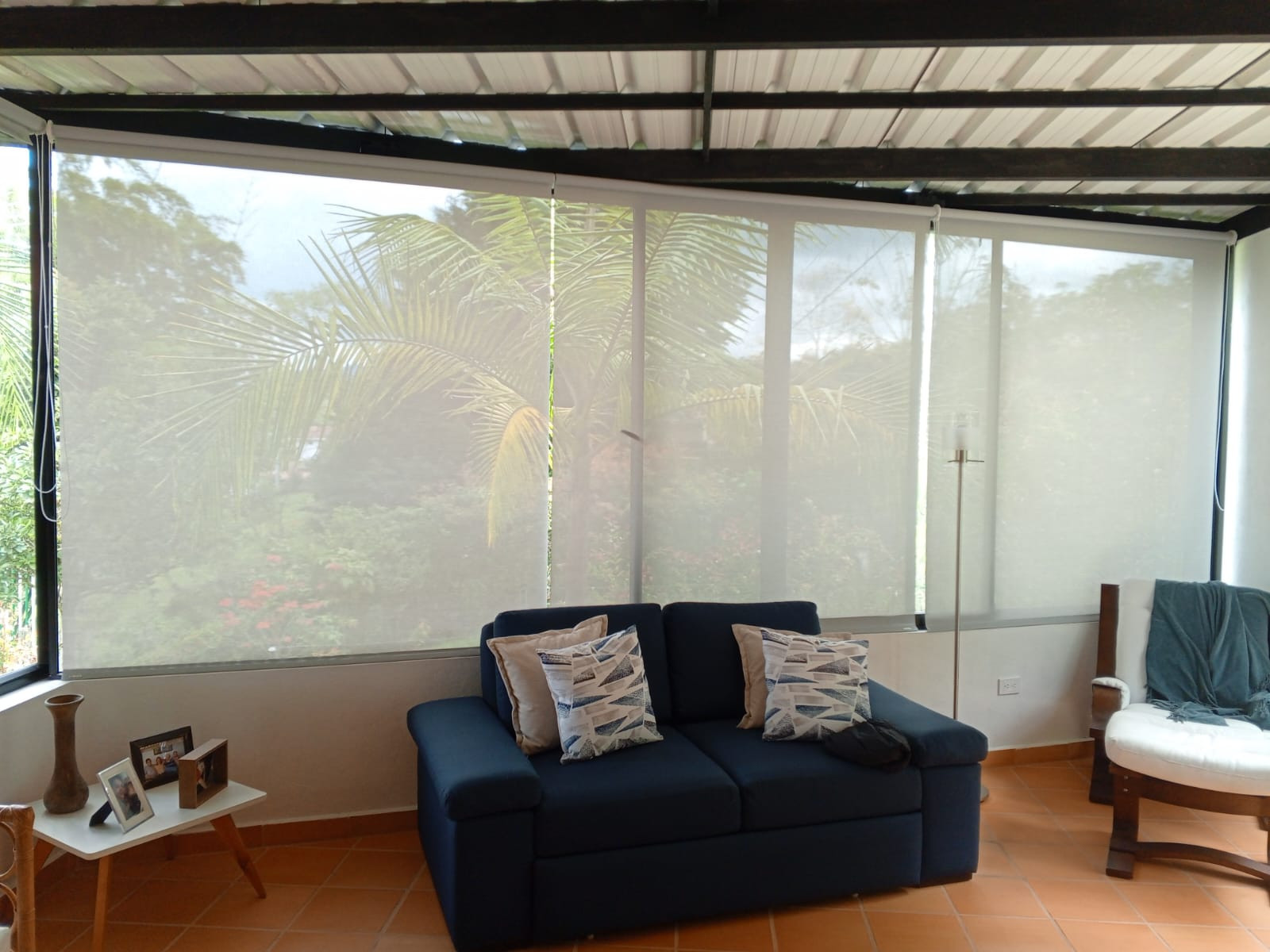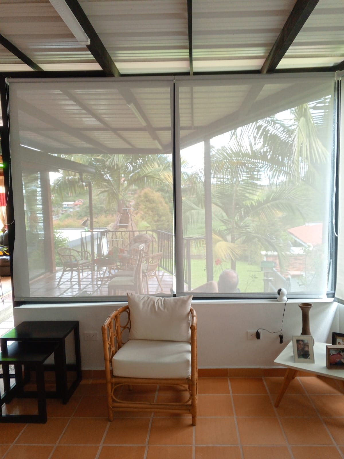 Descripción del producto: Es un producto de apariencia minimalista en el que el tejido es el protagonista. El tejido, que puede ser técnico (Screen), decorativo, o blackout, se enrolla en un tubo de aluminio el cual gira de manera manual (por medio de una cadena) o automática (con motor).