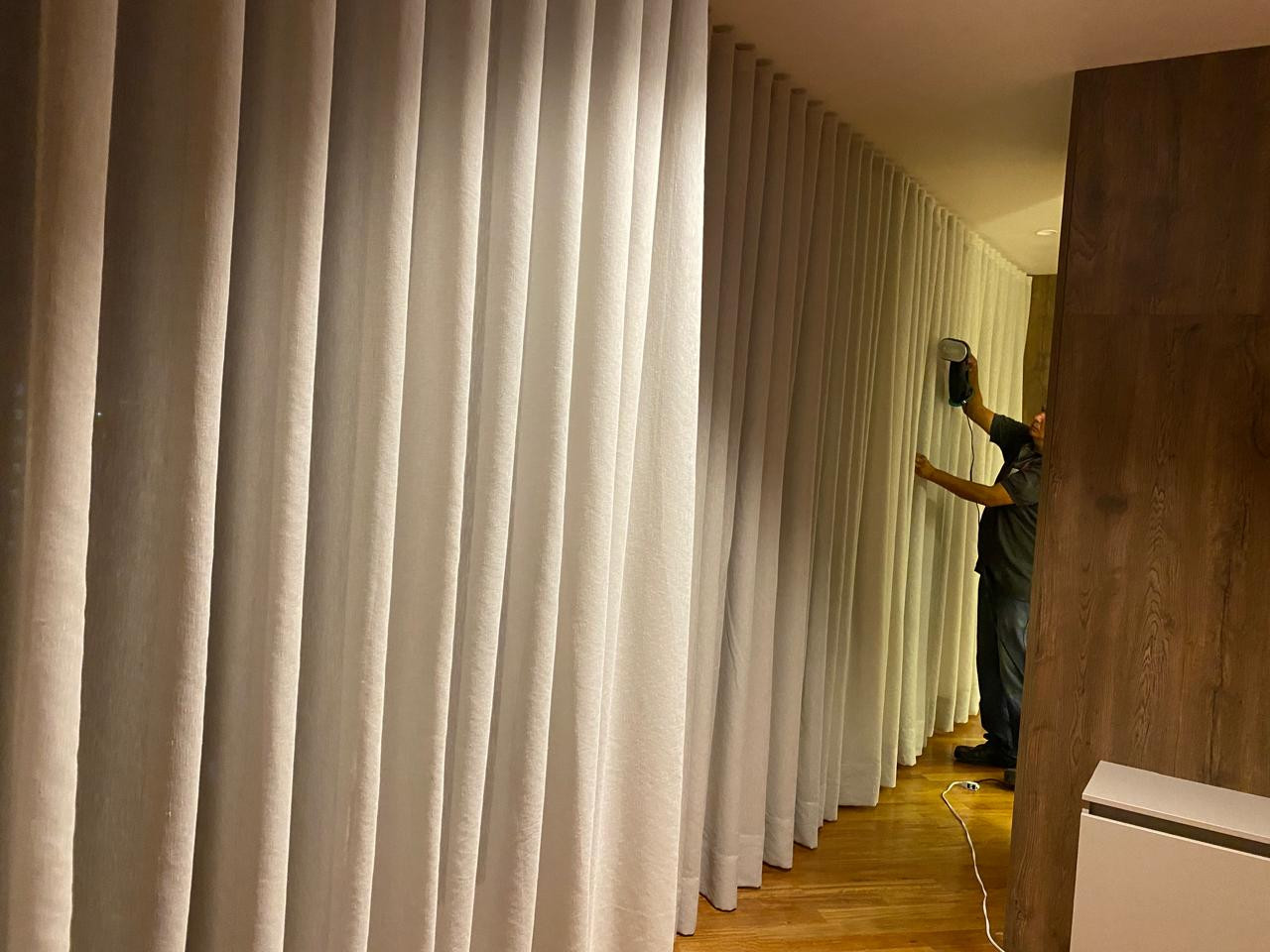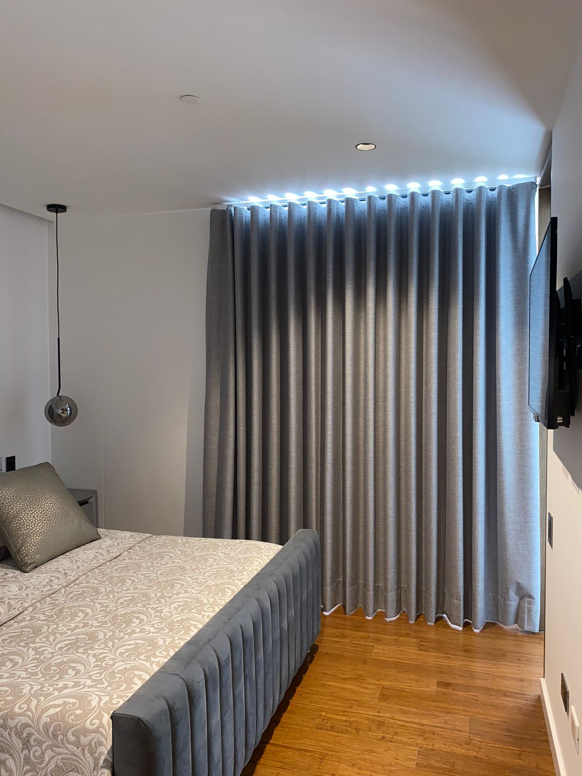 Inspirada en las cortina clásica, pero cuentan con un Novedoso sistema que le da una apariencia moderna y sofisticada. Consiste en un delgado riel de aluminio que tiene incorporado una cinta transparente cocida a la tela y sirve para darle forma especial de ondas tipo ola. Tenemos un amplio portafolio de telas trasluz, Blackout y velos. Su accionamiento puede ser manual (con bastón o Riel)o motorizado. También podemos hacer ángulos de 90 Grados, rieles en diferentes curvas.