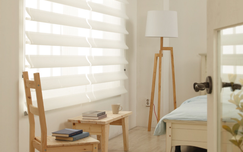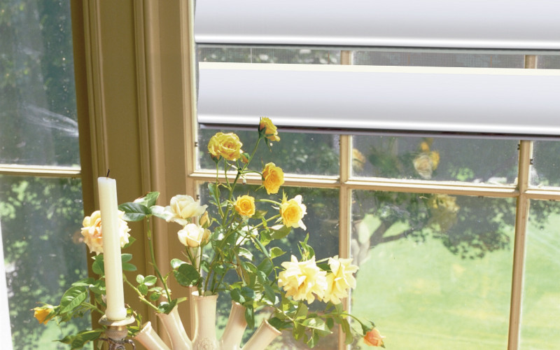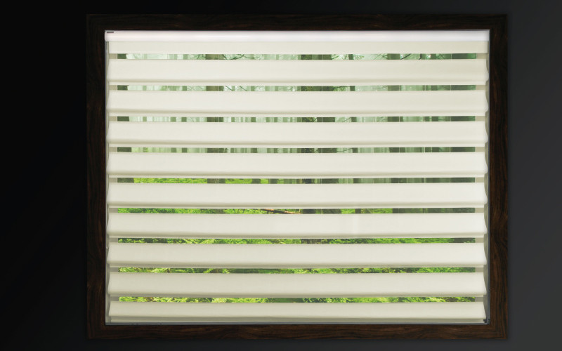 Pliegues de tejido opaco que al recogerse dejan expuesto un velo transparente. Cuando la cortina se está enrollando en el tubo lo hace con una posición similar a la de una enrollable, en la cual la tela opaca está completamente superpuesta al velo transparente. Se fabrica con cabezal y perfil de lujo.